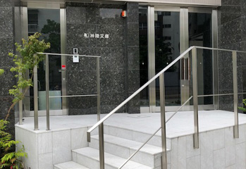 店舗階段手すり、内部階段手すり・進入防止柵、外構ステンレス手すり、作業室手すり